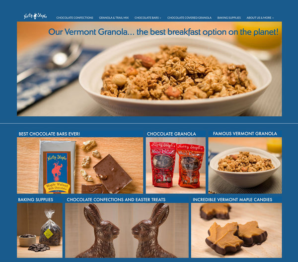 After 12 years of lagging web sales and almost giving up on e-commerce, Nutty Steph partnered with Heather at HMP Web Consulting and moved their site from Joomla to Shopify. Heather oversaw a full product line photo shoot to create mouthwatering images of all confections and granola products.