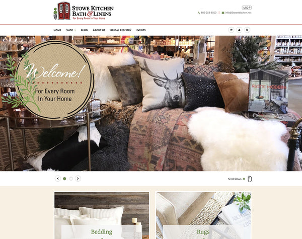 Stowe Kitchen Bath & Linens selected a very robust theme with a lot of great features including mega menus to showcase all the varied products and departments. This theme also has fantastic sort and filter features to help customers narrow down the search for the items they are looking for. With features like abandon cart, event manager app, Instagram feed, a bridal registry app, and an active blogger, Stowekitchen.net has seen an increase in online sales.